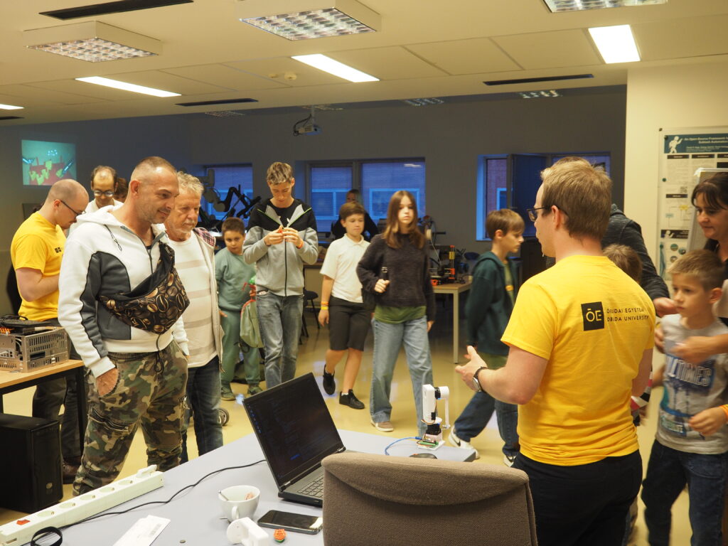 Az idei Kutatók Éjszakáján ismét megnyitotta kapuit az Óbudai Egyetem Bejczy Antal iRobottechnikai Központja. A programra minden korosztályból érkeztek érdeklődők, akik turnusokban látogatták meg a laboratóriumot. A látogatás egy rövid, körülbelül 15 perces prezentációval kezdődött, amely betekintést nyújtott a központ kutatási területeibe és a folyamatban lévő projektekbe. Ezután a vendégek testközelből is megismerkedhettek a különböző robotikai eszközökkel és fejlesztésekkel. Nagy sikert arattak a sebészeti robotok és az ipari robotkarok bemutatói, amelyeket a kutatók interaktív formában ismertettek. A gyerekek számára külön élményt jelentett, hogy maguk is kipróbálhattak bizonyos eszközöket. A rendezvény célja az volt, hogy közelebb hozza a robotikát a nagyközönséghez, és megmutassa, hogyan válik a tudomány a mindennapok részévé. A központ munkatársai számára is nagy öröm volt a közvetlen találkozás a látogatókkal. Az esemény végén többen jelezték, hogy szívesen visszatérnének, akár tanulóként, akár együttműködő partnerként. Összességében a program remek lehetőséget kínált a tudomány népszerűsítésére és a jövő generációinak inspirálására.